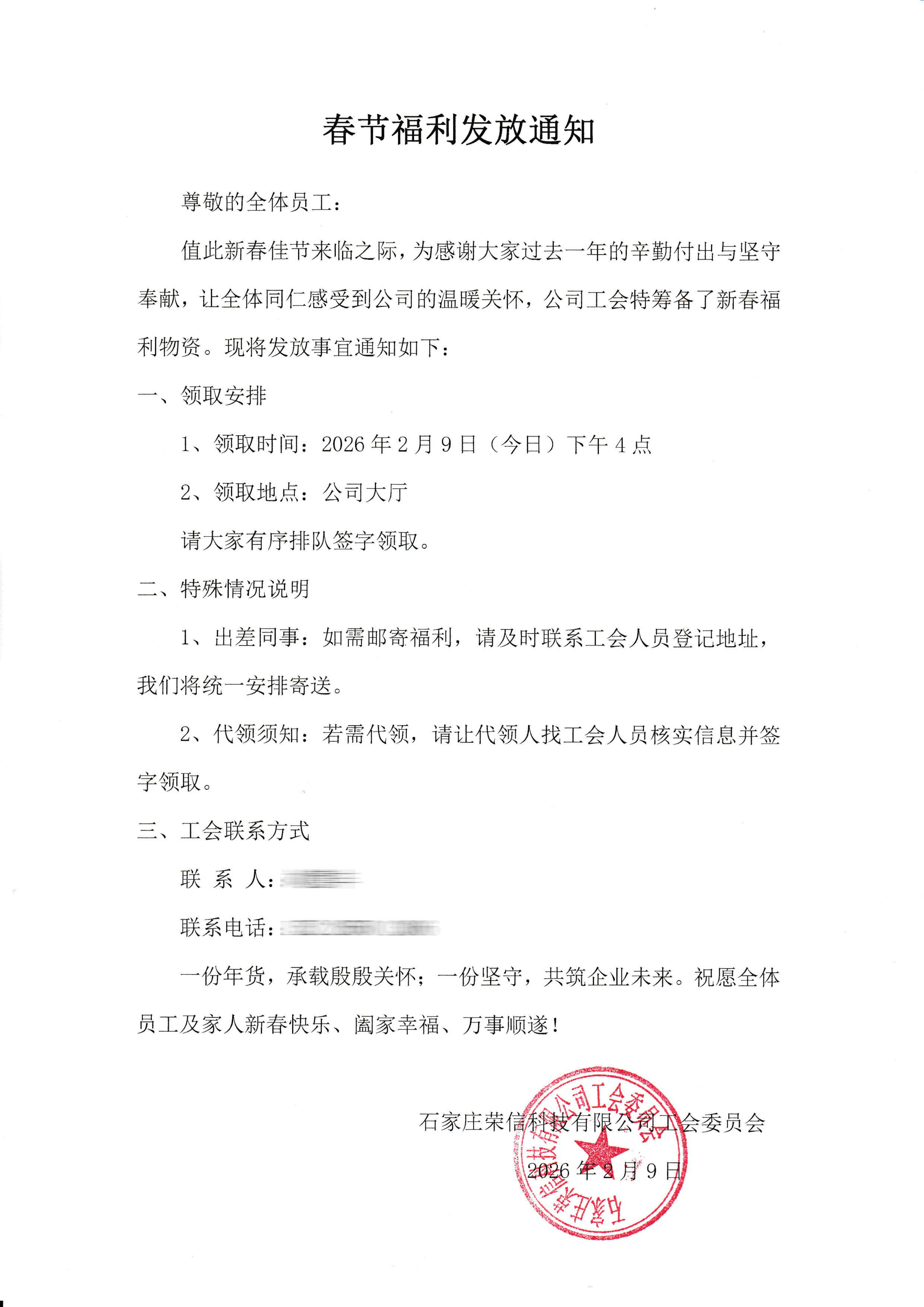 春節福利發放通知